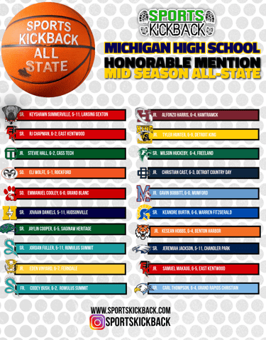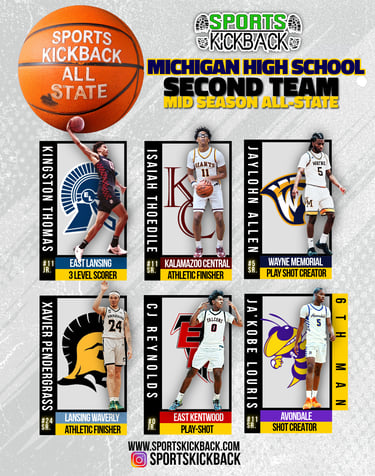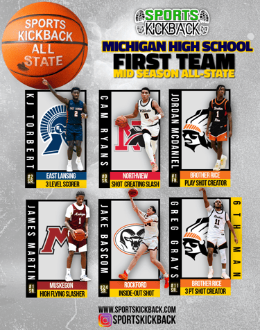 As the Michigan high school basketball season hits the midway point, standout performances, team success, and big-time moments have separated the elite from the rest. The Sports Kickback Midseason All-State Teams recognize the players who have defined the first half of the season — not just with stats, but with winning impact, consistency, and projected postseason influence.