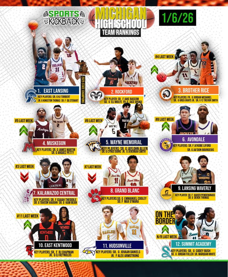 This week’s rankings highlight the parity across Michigan high school basketball. While East Lansing continues to set the pace, movement throughout the middle of the rankings shows how thin the margin is between contenders. With showcase season in full swing and conference play intensifying, expect more shakeups in the weeks ahead.