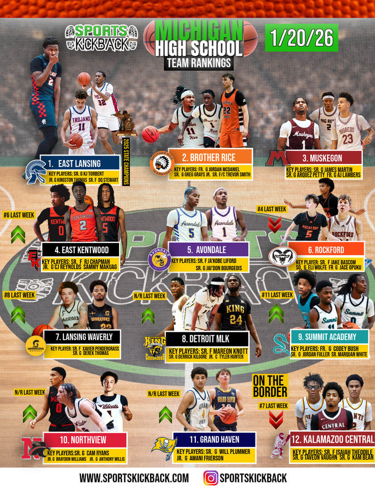 Stay locked in with Sports Kickback for weekly Michigan high school basketball rankings, player spotlights, and in-depth coverage from across the state.